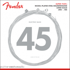 - Fender 7250 nickel-plated steel strings combine the high output and dynamic sound of steel with the smooth feel of nickel. These roundwound strings are bright and punchy and are perfect for rock, blues and more. There's no better way to let your bass personality shine through than with this highly articulate string set.