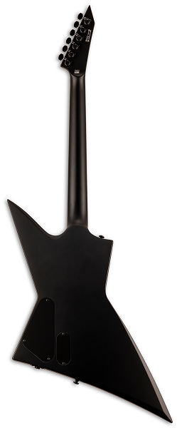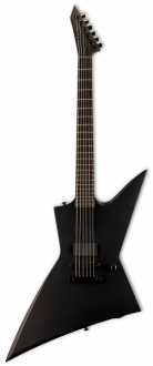 The LTD Black Metal Series is comparable in build quality to our LTD Deluxe “1000 Series” instruments, but with a dark and menacing design theme of all-black finish, components, and hardware, a single premium-quality pickup, Macassar ebony fingerboards with no inlays and glow-in-the-dark side markers, and even a newly-designed black metal LTD logo on the headstock. The EX Black Metal features set-thru construction, 22 extra-jumbo stainless steel frets, a TonePros locking bridge and tailpiece, and a single direct-mount EMG 81 pickup with black logo