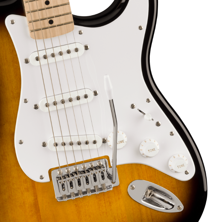 - Mostek: 6-sedlový tremolo ve vintage stylu s blokovými sedly