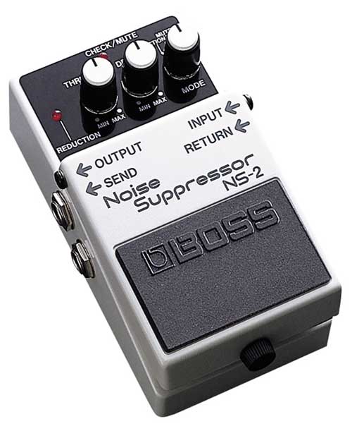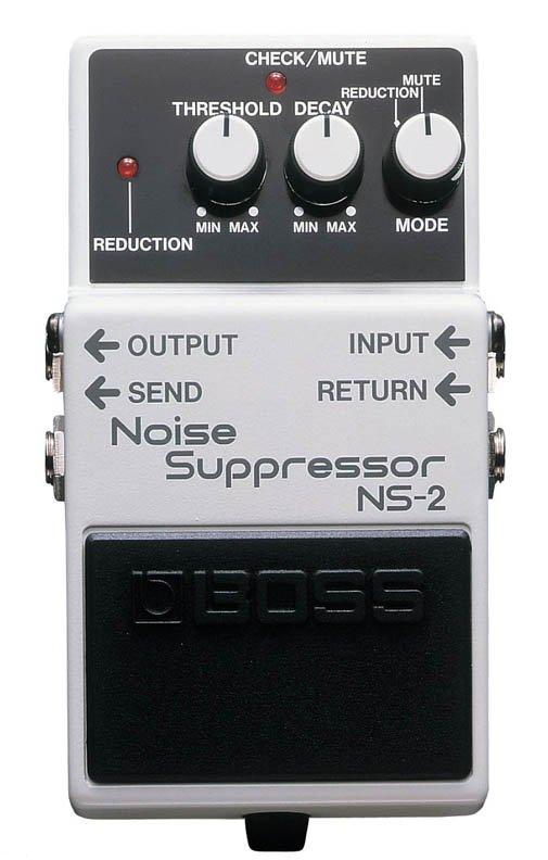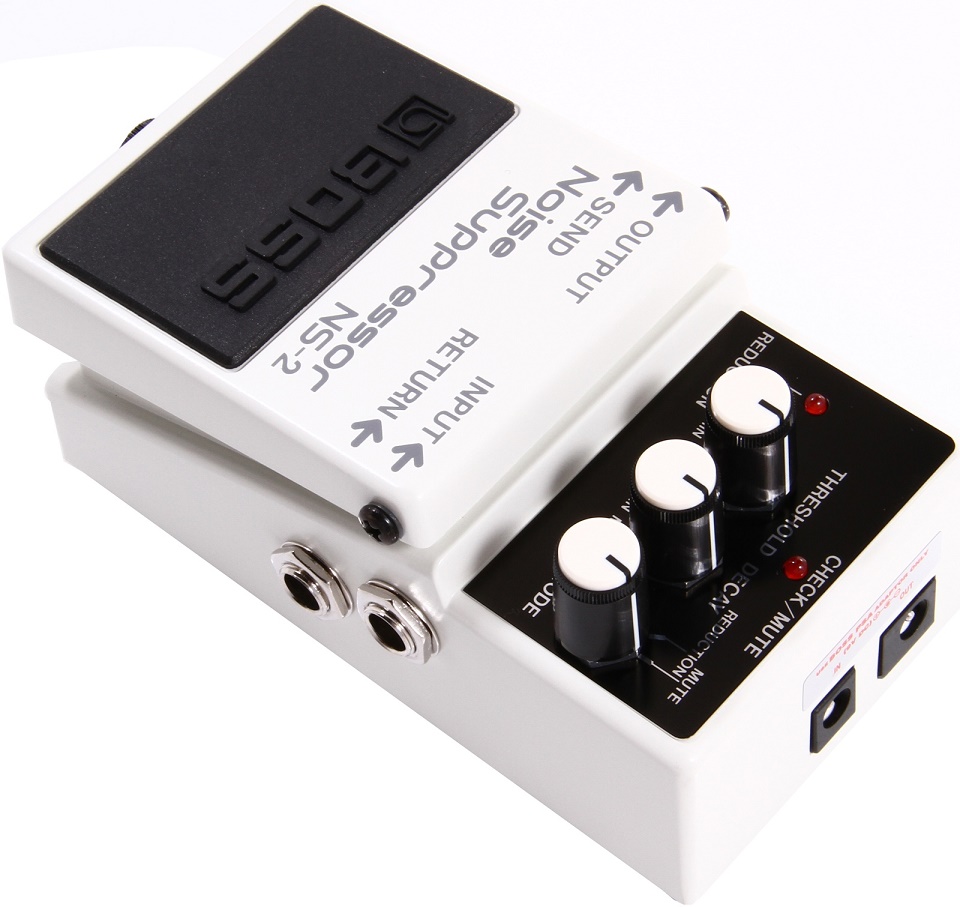 - Controls: MODE selector switch, DECAY knob, THRESHOLD knob, Pedal switch