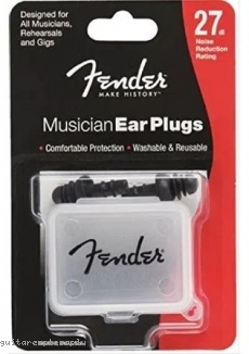 Play all night without suffering from painful morning-after tinnitus. With a 27-decibel noise reduction rating (when used properly), Fender Musician series ear plugs provide high-volume hearing protection designed specifically for musicians—perfect for rehearsals and performances