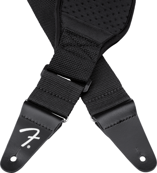 Swell™ Neoprene Strap, 3" Designed for maximum comfort, the Fender® Neoprene strap is perfect for enduring long practices and performances. The large neoprene pad alleviates weight off your back and shoulders while providing heat relief through its mesh construction. Extra reinforced pads on the end tabs ensure long-lasting durability for use with heavier instruments