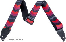 This Black poly guitar strap features a Jackson® double V pattern with leather ends also in the shape of the headstock. Available in four color combinations — Black with White Double Vs, Black with Red Double Vs, Black with Blue Double Vs and Black with Purple Double Vs