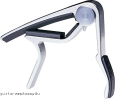 This curved-radius electric guitar capo allows you to quickly and easily change key with a squeeze of the hand without hindering your fingers or scratching the neck of your guitar