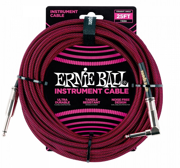 Ernie Ball instrument cables feature a high-quality design made with superior components that are built to last. Dual-conductors deliver reliably clear tone with crisp highs, tight mids, and rich harmonics. Multiple shielding materials preserve the signal with low handling noise, and the braided jacket exterior provides a tangle-resistant experience. Cable length 25ft (7.62m)