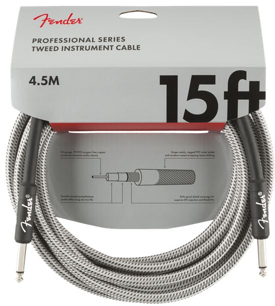 Professional Series Instrument Cable, 15', White Tweed 4,5 m